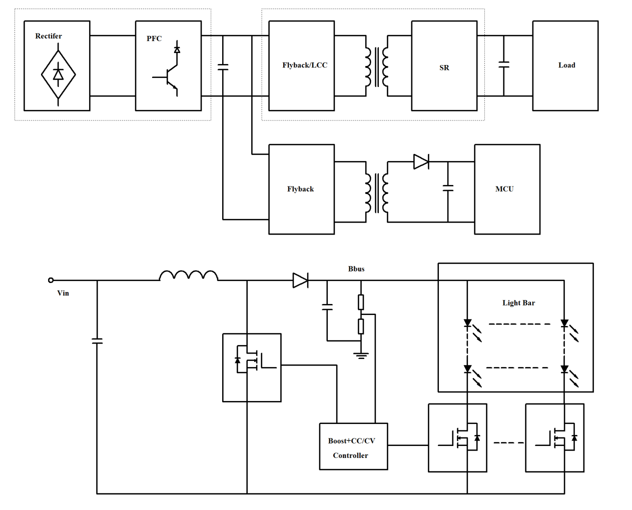 应用说明 彩电液晶屏的背光照明系统由发光部件、导光板和背光电源构成。背光电源功率一般为100-500W,其作用就是将市电的交流电压转换成12V的直流电压输出,从而向显示器供电。一般拓扑结构会采用PFC、LLC、SR、Falyback、BOOST+CC/CV拓扑等。江苏常州俊毅药品研发有限公司能提供不同表面贴装的高压和低压MOSFET,满足整机的轻便、能效高的需求。